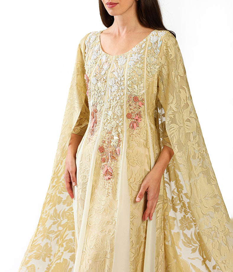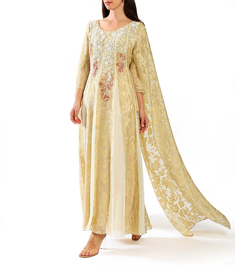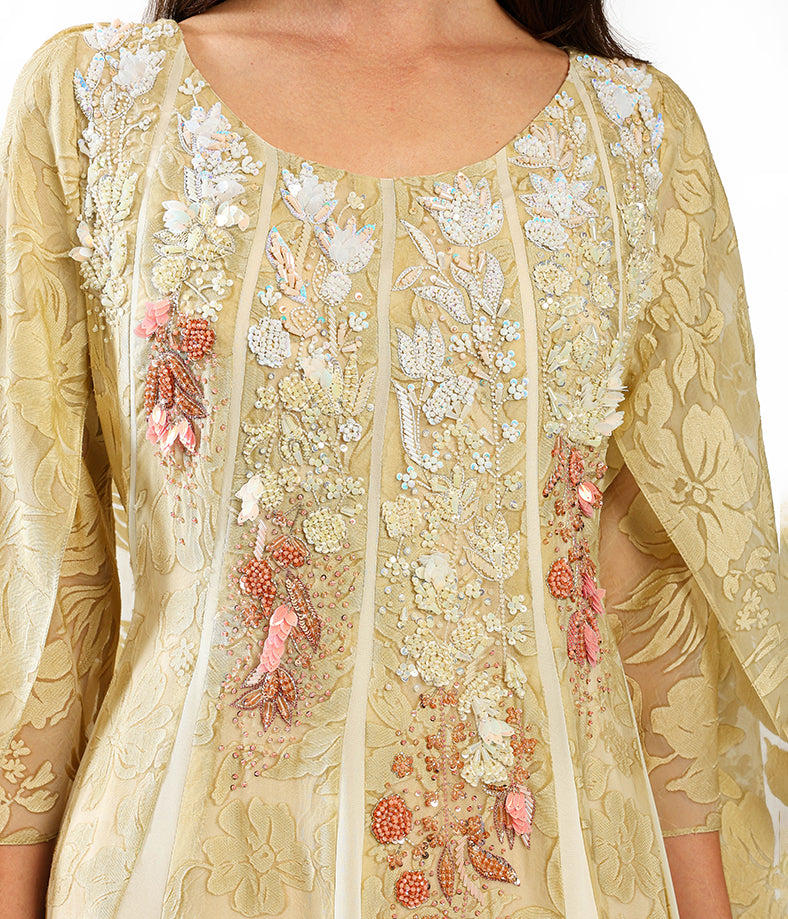 Light overlap cut chiffon dress, embellished with sequins.