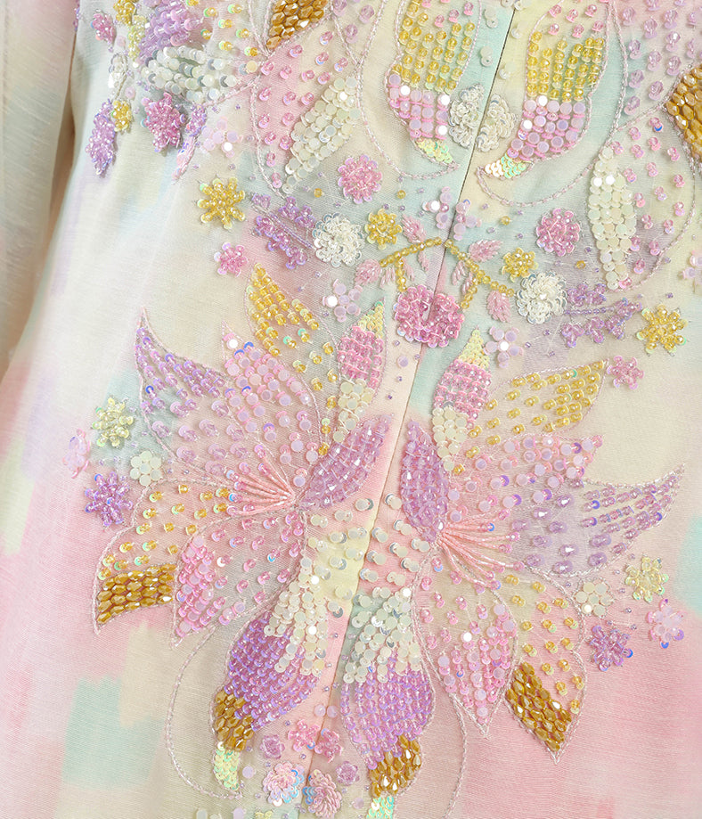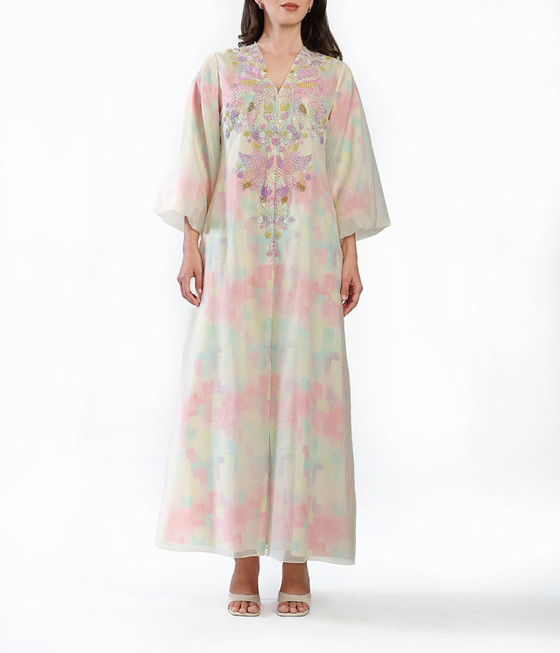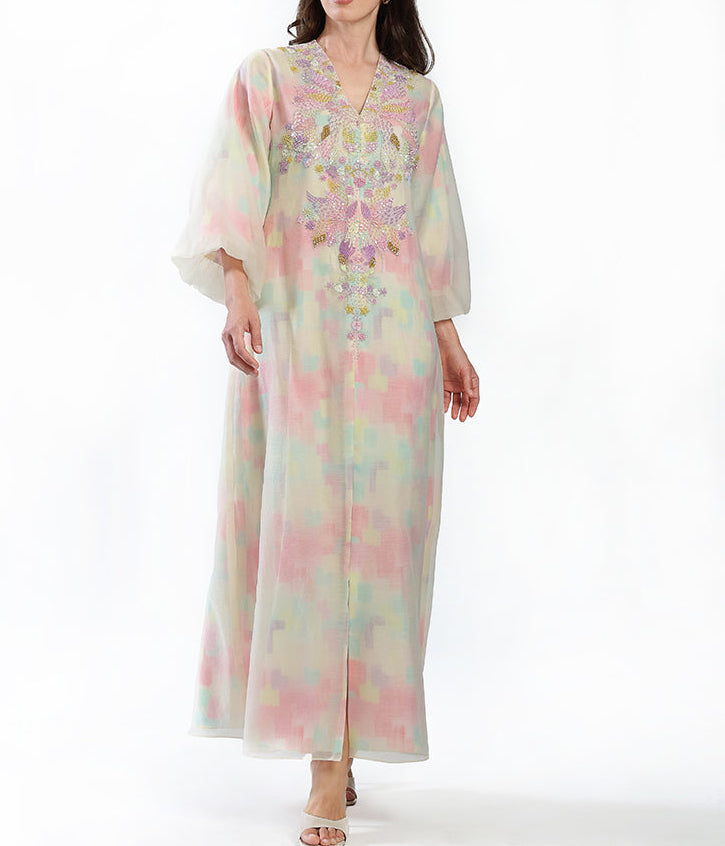Light organza gown with hand made embellishment.