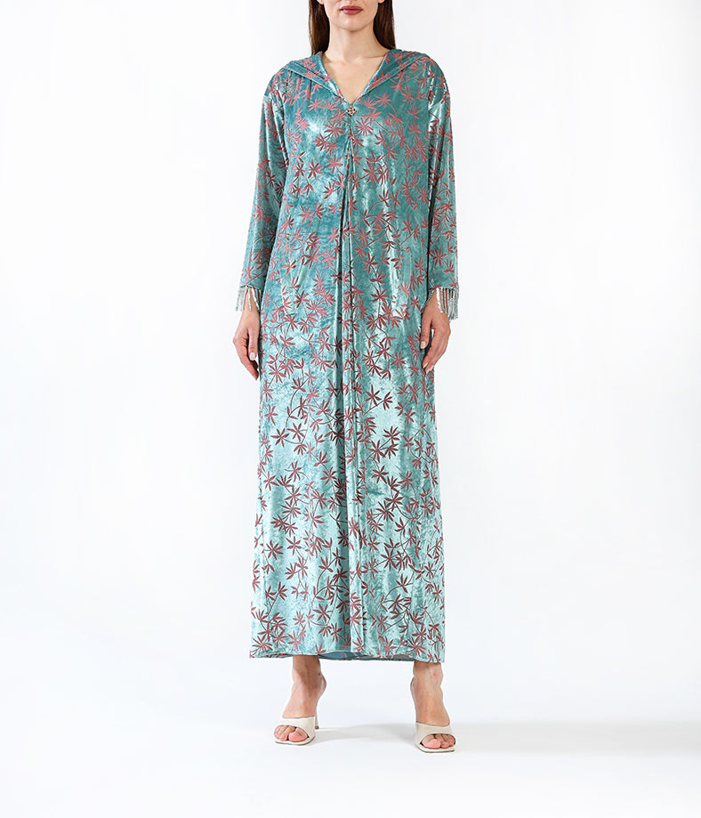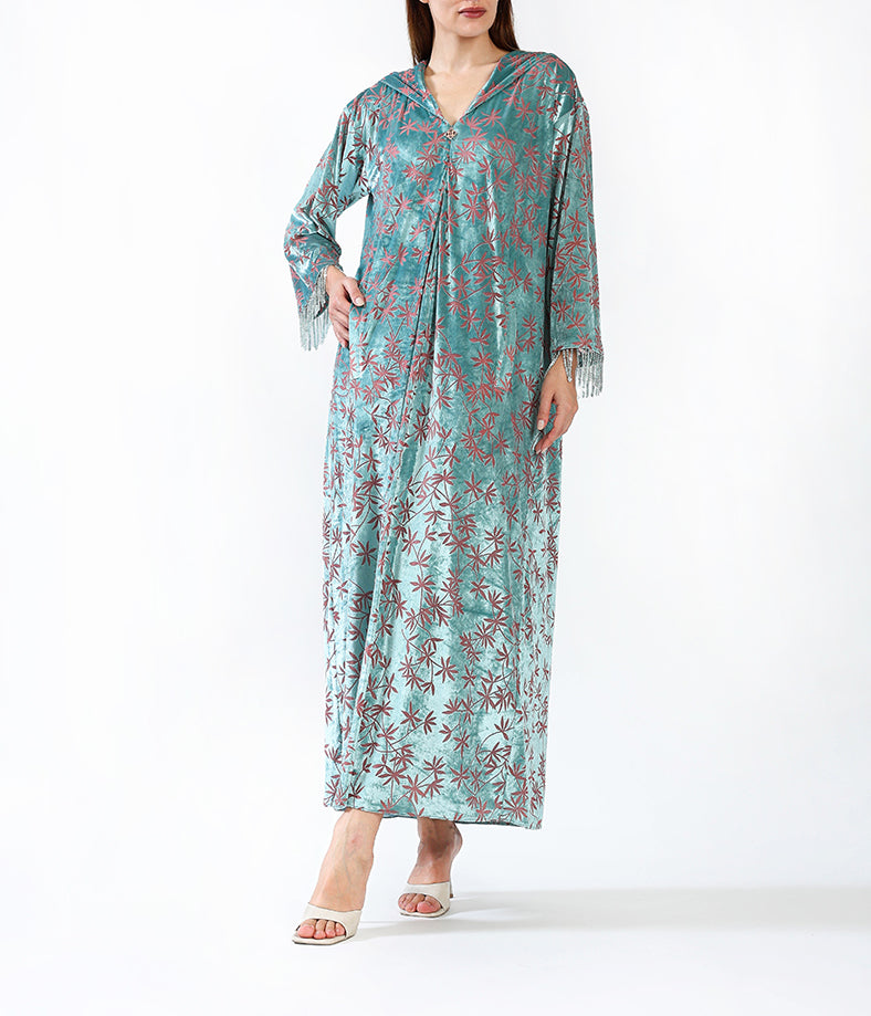 Light velvet custom Moroccan kaftan.