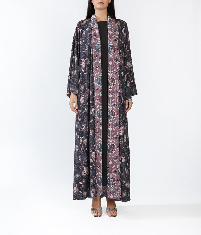Light georgette chiffon reversible abaya.  Customized print inspired from the beautiful experience of whale watching.