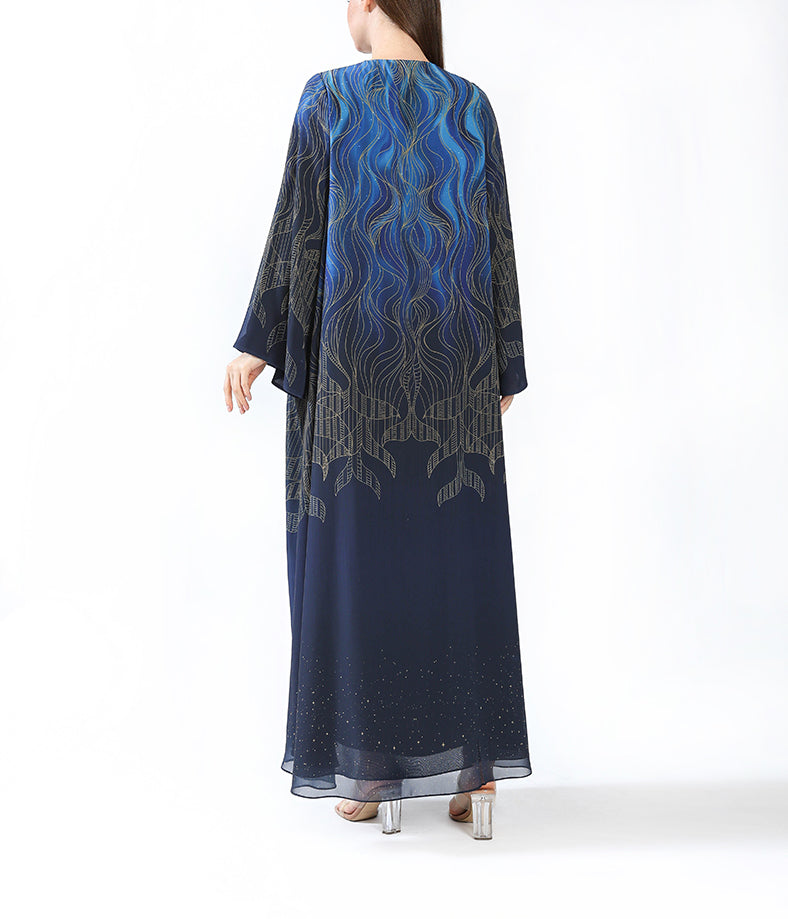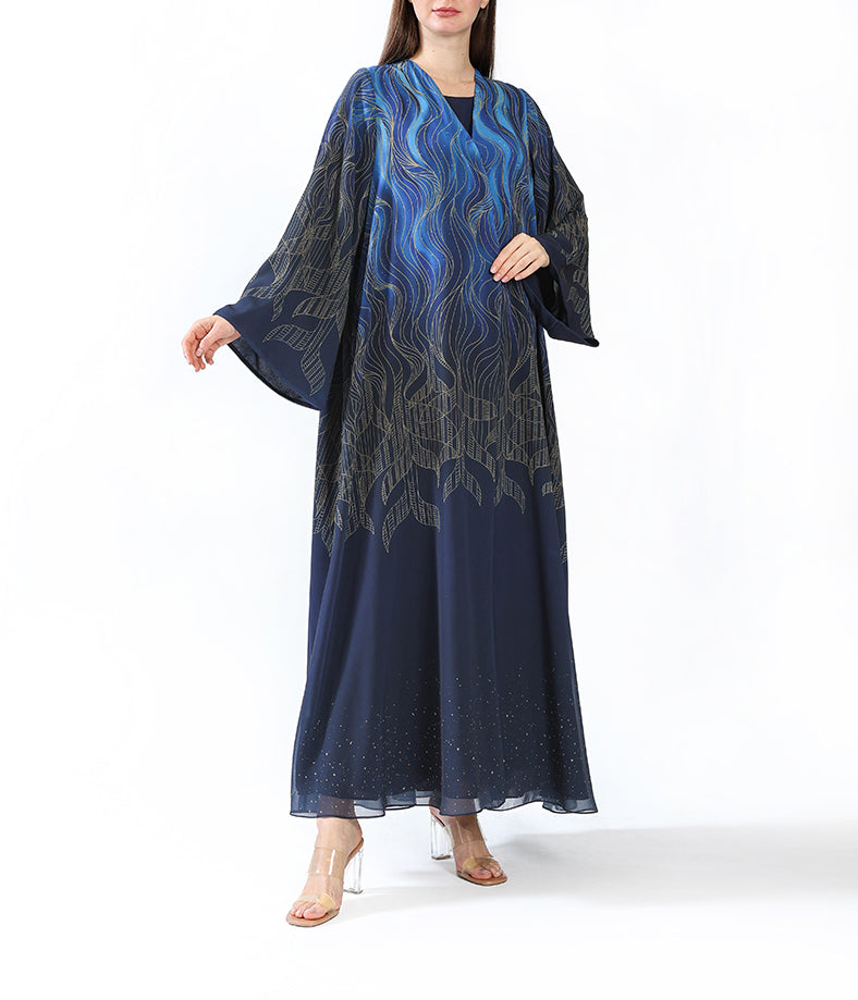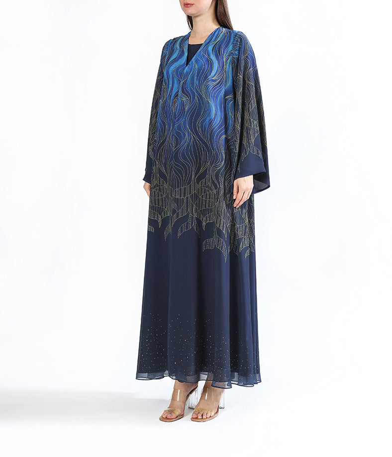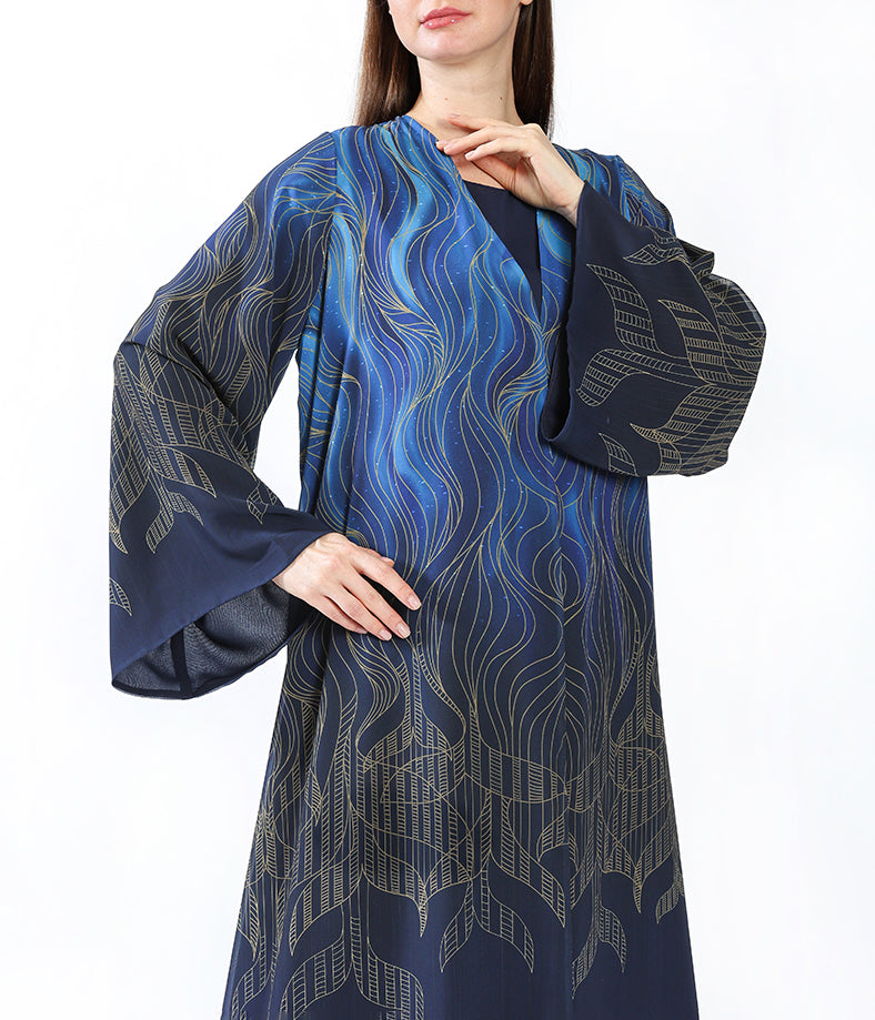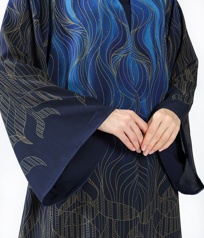 Light crepe abaya.  Customized print inspired from the beautiful experience of whale watching.